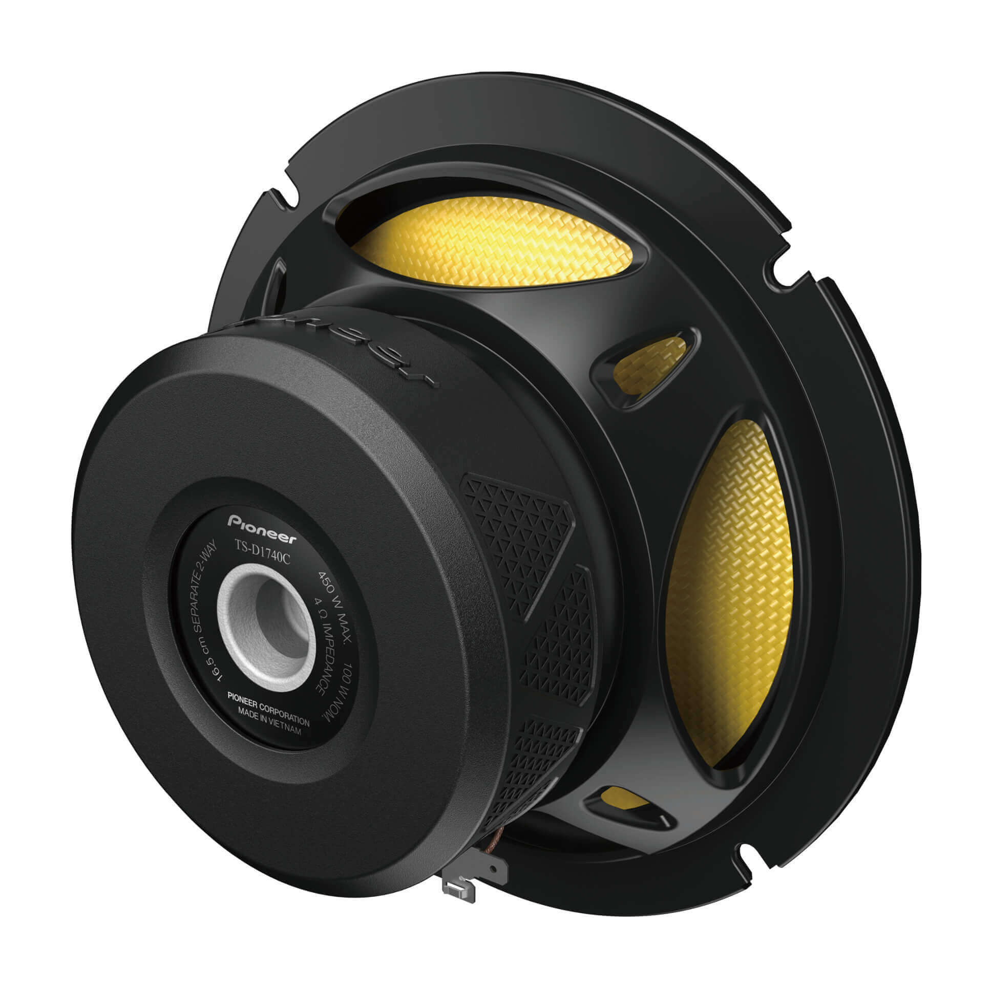 Crafted from a lightweight, rigid yellow fiber cone with precision resin infusion, the TS-D1740C handles high pressure for tight, powerful bass. Its vibration-reducing design delivers cleaner mids, brighter highs, and outstanding vocal clarity.
